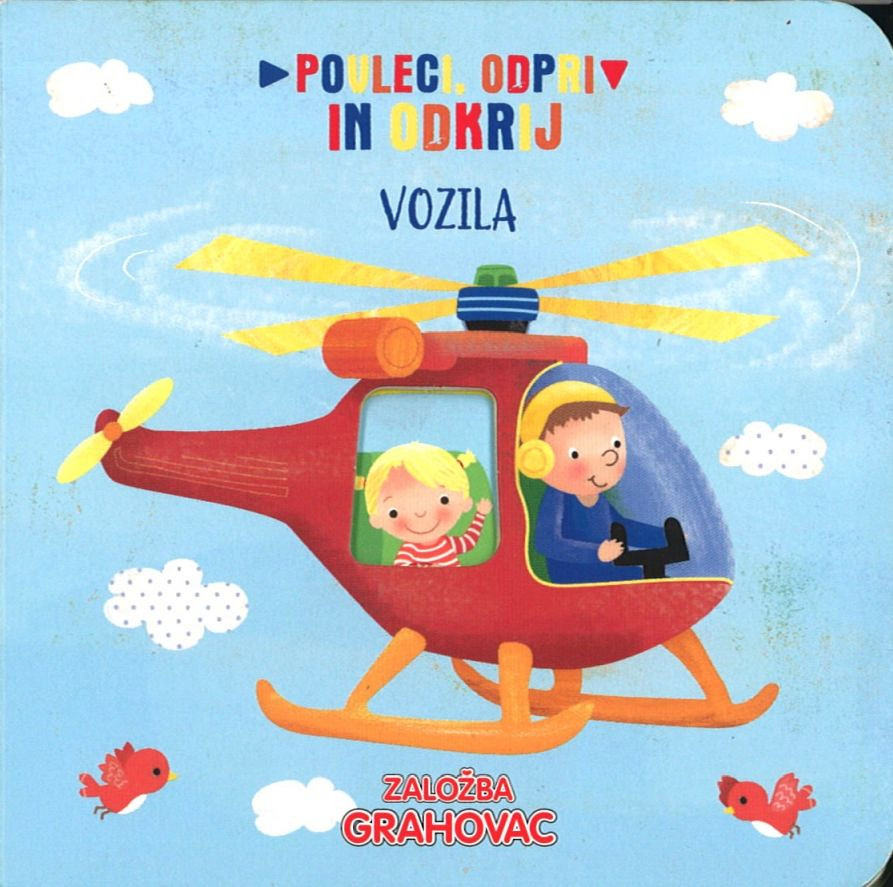 Mala kartonka z okenci in drsniki te popelje odkrivat najrazličnejša vozila.