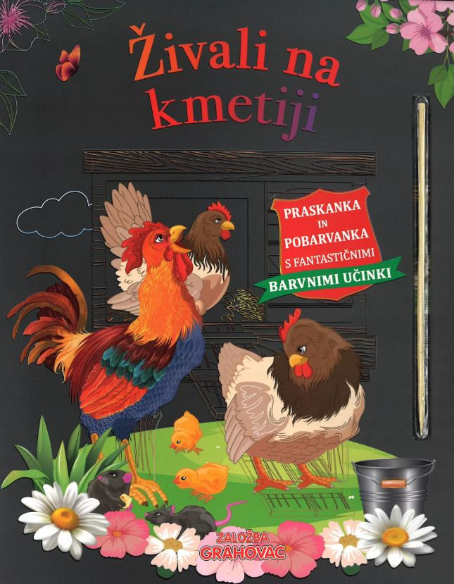 Odkrij čudovite živali na kmetiji, ki se skrivajo na straneh te knjige. S priloženo paličico spraskaj črne podobe in se pusti presenetiti fantastičnim barvnim učinkom, ki bodo nastali.