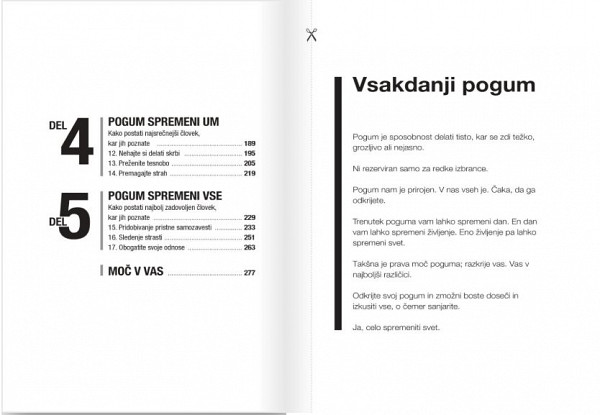 Preoblikujete si življenje, službo in samozavest z vsakdanjim pogumom! Pridružite se 10 milijonom ljudem, ki so odkrili preprosto skrivnost, kako spremeniti kar koli ... pravilo petih sekund. Če ne boste začeli delati tistega, česar se vam ne ljubi, se boste čez eno leto zbudili in znašli na natančno istem mestu.