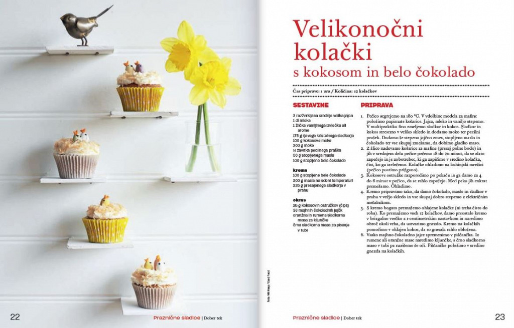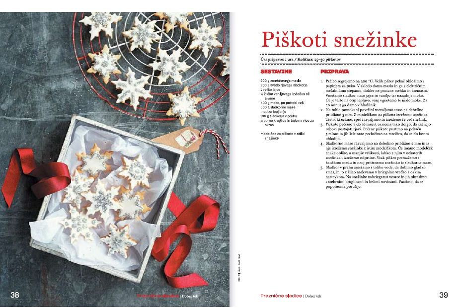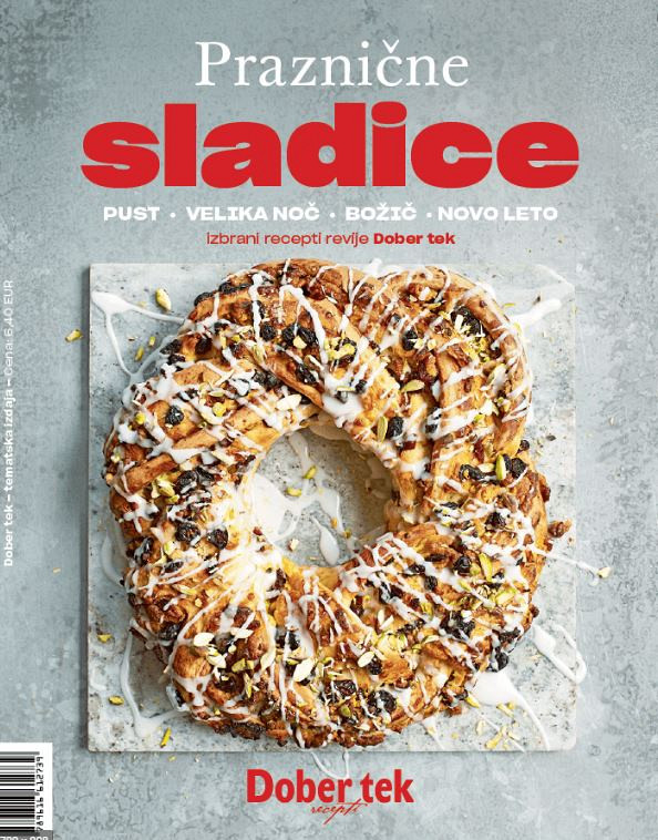 V novi sladki tematski posebni izdaji revije Dober tek, smo zbrali najboljše praznične in slavnostne sladice: začenjamo s pustnim cvrtjem, nadaljujemo z velikonočnimi pincami in pletenicami, poticami, ki se priležejo za vse praznike, sodobnimi prazničnimi slaščicami, kolački, tortami in kremicami, z Miklavžem pečemo piškote, za božič slastne kolače, za novoletne in druge zabave pa imenitne slaščice, ki naredijo vtis. Preberite več