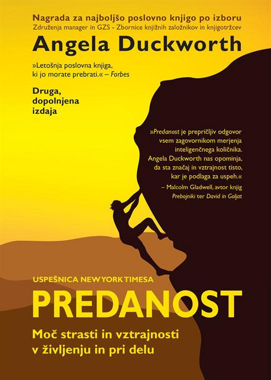 »Predanost je prepričljiv odgovor vsem zagovornikom merjenja inteligenčnega količnika. Angela Duckworth nas opominja, da sta značaj in vztrajnost tisto, kar je podlaga za uspeh.« – Malcolm Gladwell, avtor knjig Prebojniki ter David in Goljat
