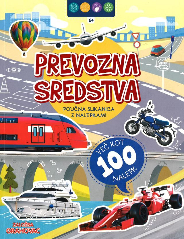 Dobrodošli v zanimivem svetu prevoznih sredstev! Spoznali boste različna prevozna sredstva, s katerimi potujemo po kopnem, vodi in zraku. Nato pa boste še z nalepkami dopolnili ilustracije. Preberite več