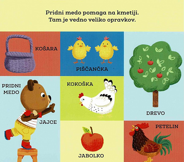 Pridni medo pomaga na kmetiji. Tam je vedno veliko opravkov. Preberi, kaj se na kmetiji dogaja in pomagaj pridnemu medu z DRSNIKI raziskati kmetijo. Preberite več