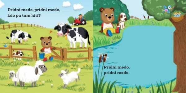 Pridni medo danes pomaga na kmetiji! Kartonka z drsniki za male bralce. Koliko živalskih glasov poznaš? Jaz sem jih naštel 17! Preberite več