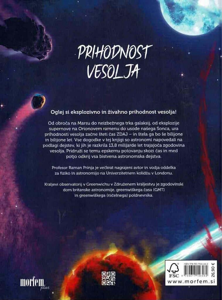 Prihodnost vesolja – oglej si eksplozivno in živahno prihodnost vesolja! Od obroča na Marsu do neizbežnega teka galaksij. Od eksplozije supernove na Orionovem ramenu do usode našega Sonca, ura prihodnosti vesolja začne šteti časm ZDAJ – in štela ga bo še bilijone in bilijone let. Vse dogodke v tej knjigi so astronomi napovedali na podlagi dejstev, ki jih je razkrila 13,8 milijarde let trajajoča zgodovina vesolja. Pridruži se temu epskemu potovanju skozi čas in med potjo odkrij vsa bistvena astronimska dejstva. Preberite več