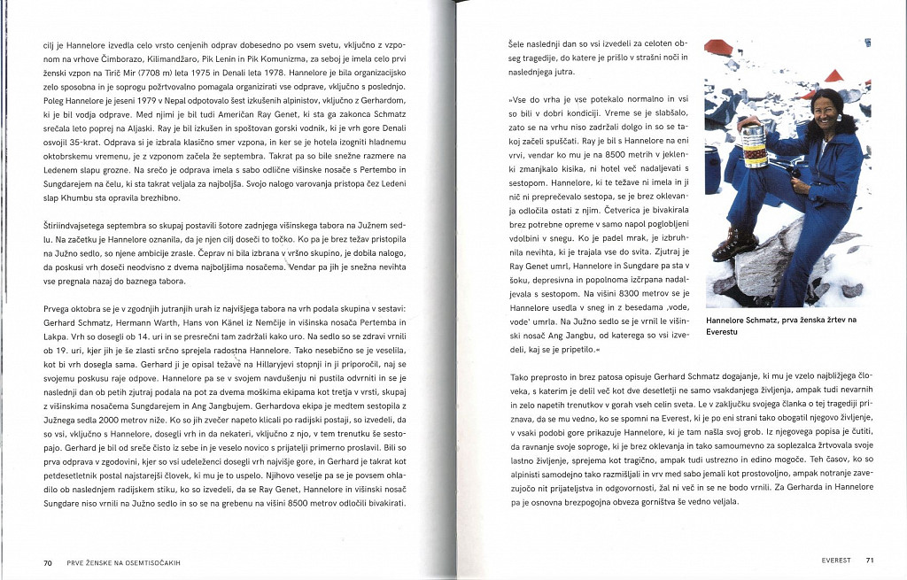 "V knjigi Dine Štěrbove Hrepenenja in usoda - Prve ženske na osemtisočakih - so opisani odlični dosežki alpinistk, ob tem pa tudi nesreče in žalostni konci najboljših, o katerih večinoma nismo dosti vedeli." - France Malešič, Gore-Ljudje.net
