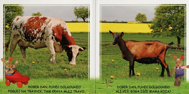 Vsi otroci imajo radi živali in uživajo v igri vprašanj in odgovorov. V tej knjigi bodo spoznali najpogostejše domače živali. Zelo privlačna in zabavna knjiga za vesele urice, ki jih preživljate s svojim otrokom. Trda, vatirana vezava, 14,5 x 14,5 cm, 12 strani.