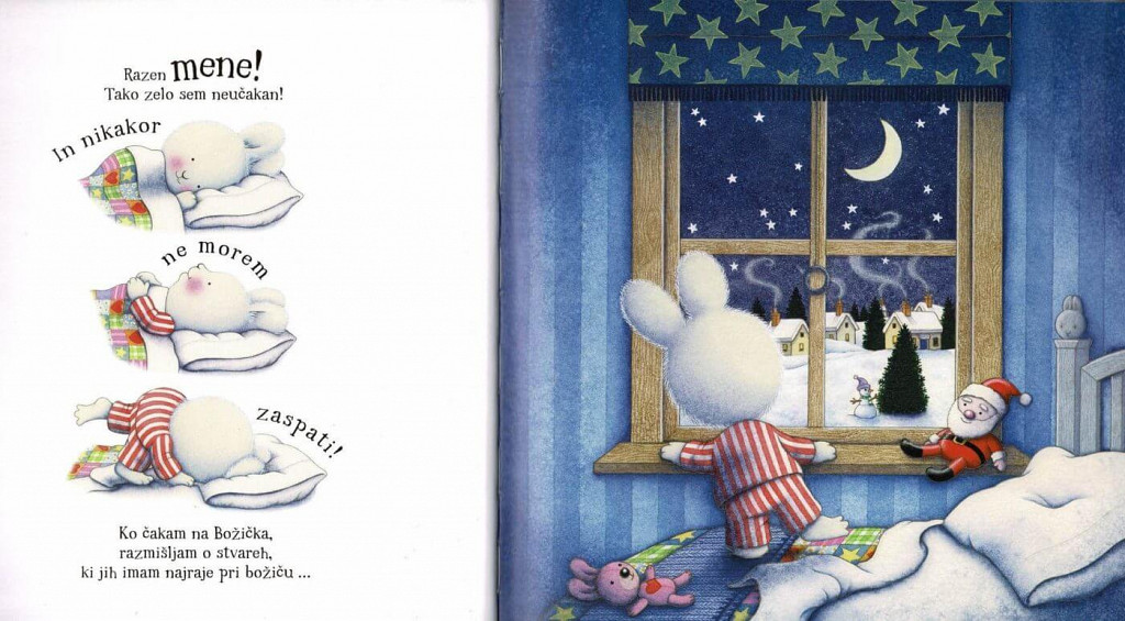 Le kako naj zaspim, če pa zjutraj pride Božiček! Zadnjo noč pred božičem vsi v hiši sladko spijo … razen malega zajčka, ki je preveč neučakan, da bi lahko zaspal. Božični prazniki so čas, ki ga vsi nestrpno pričakujemo. Preberite več