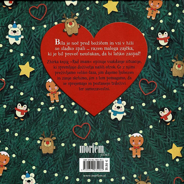 V knjigi z zajčkom krasimo smrečico, pečemo piškote, se veselimo daril, Božička, božične večerje … In kar je najlepše, da smo za praznike skupaj s tistimi, ki jih imamo radi. S to knjigo lahko pomagamo otrokom tudi razumeti, da je božič čas, ko moramo biti hvaležni za to, kar imamo.