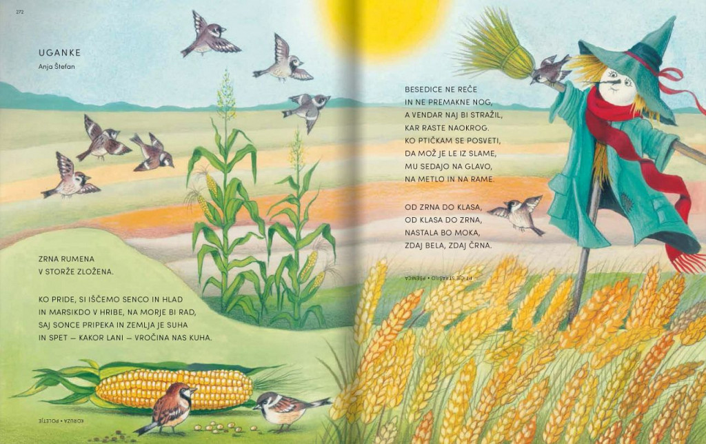Sladkosnedi medvedki, deček s sončnico, Mižekmiž, rakunčki na rolkah … ¦ to je le nekaj prelepih podob v Jelkini novi antologiji. Pesmi, rime in uganke je napisalo 40 najboljših klasičnih in sodobnih slovenskih avtorjev od Frana Levstika, Srečka Kosovela, Ljudmile Prunk - Utve, Kajetana Koviča, Daneta Zajca, Nika Grafenauerja, Miroslava Košute, Janeza Bitenca, Anice Černejeve, Toneta Pavčka, Neže Maurer do Bine Š. Žmavc, Anje Štefan in drugih.