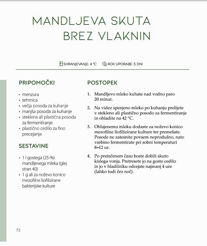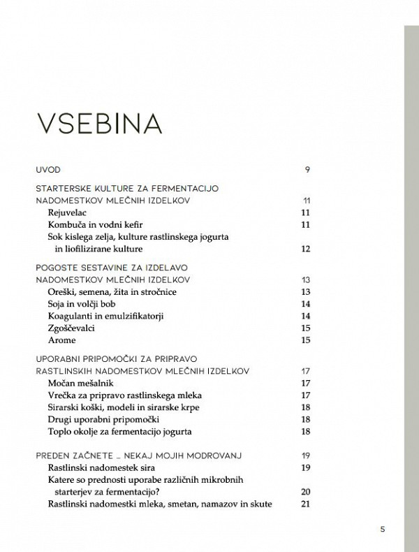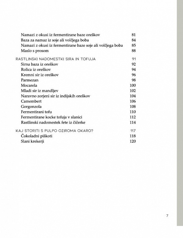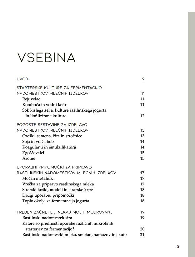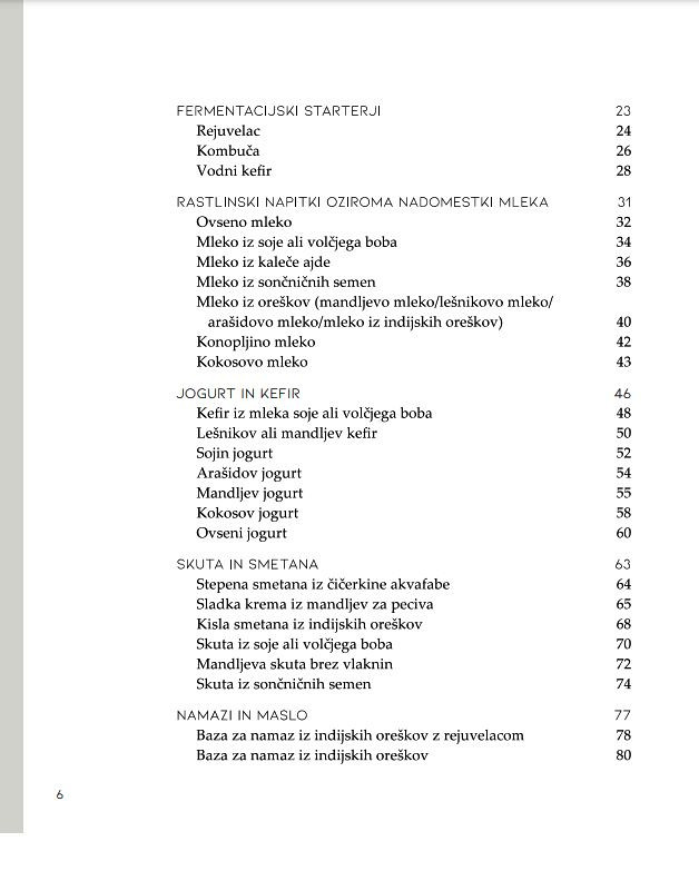 Recepti oz. postopki v knjigi v 80% vsebujejo postopek fermentacije, kar pomeni, da knjiga omogoča pripravo resnično zdravih in hranljivih rastlinskih nadomestkov mlečnim izdelkom.