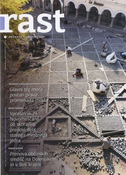 V prvem delu prostor namenjamo vplivu predhodne ureditve Glavnega trga, izkušnjam koordinatorja in projektantov prenove ter prvim odzivom novomeščanov. V drugem delu želimo izvedeti, kakšno je stanje mestnih vaških jeder v regiji ter premisleku o dejavnikih (ne)uspešnosti prenov drugje po Sloveniji. V zadnjem delu številke skozi pogovor predstavljamo razmišljanja arhitektk in arhitektov različnih generacij, ki so ali še vedno ustvarjajo pomembnejše prostore naše regije.Mehka vezava, 20 x 28 cm, 119 strani.