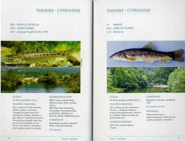 Priročni vodič o sladkovodnih ribah v jadranskem povodju Hrvaške, Slovenije ter Bosne in Hercegovine. Ta atlas rib je namenjen vsem, ki ljubijo Dinarski kras in njegove rečice, ponikalnice in jezera, še posebno je primeren za tiste, ki jih zanimajo sladkovodne ribe in njihova bivališča. Mehka vezava, 14,5 x 20,5 cm, 79 strani. Preberite več