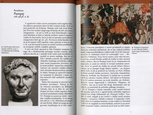 50 znamenitih, Rimska antika predstavlja najpomembnejše osebnosti od Romula do Konstantina. Evropska kultura sloni na več stebrih in eden od njih je zapuščina Rima. Rim, ki je bil najprej samo mestna država, nato pa imperij, je pustil sledi v evropskih jezikih, književnosti, religiji, arhitekturi in zakonodaji. V petdesetih slikovitih esejih Svena Rauscha so predstavljeni portreti vladarjev in filozofov, cesaric in vojskovodij ter pesnikov in politikov iz obdobja rimske antike, ki je trajala več kot tisoč let. 50 znamenitih vsebuje:- 50 vznemirljivih esejev,- 50 strani s stvarnimi podatki: življenjepisi in zgodovinska dejstva,- kratke ocene,- nasveti in namigi, kaj je vredno ogleda, branja in obiska, - več kot 200 barvnih slik.Mehka vezava, 16 x 23 cm, 271 strani. Preberite več