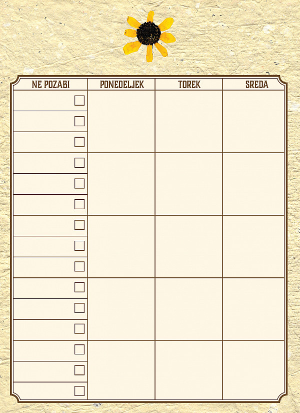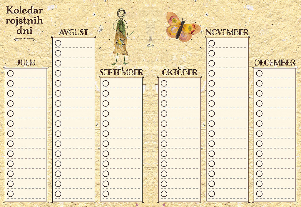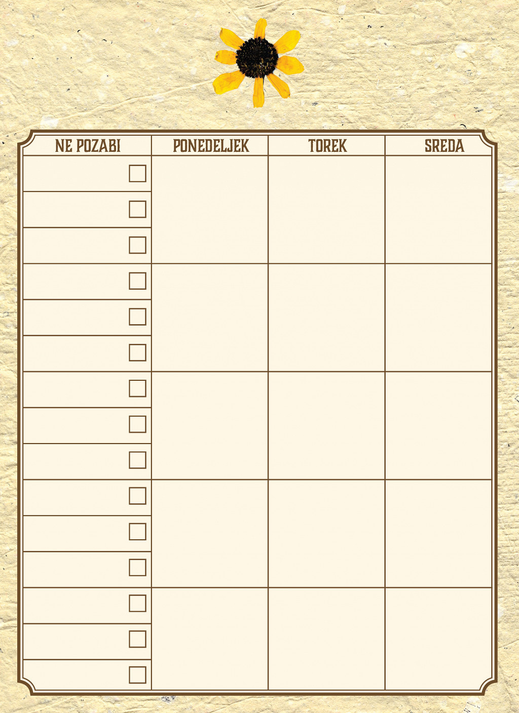 Pred vami je ličen in unikaten rokovnik, opremljen z čudovitimi motivi herbarijskega cvetja. Vsebuje tudi koledar rojstnih dni; imenik, kamor boste lahko zapisali kontakte vaših najbližjih, nakupovalni seznam in seznam stvari, ki jih potrebujete na dopustu.Trda vezava, 12 x 16,5 cm, 160 strani.http://www.galarna.si/img/products/rokovnik_herbarij_2015.pdf