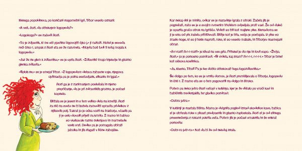 Rozi se po vasi najraje prevaža s svojim novim rdečim kolesom s srebrnim zvoncem, ki tako lepo zvoni. Ima najboljšega prijatelja,ime mu je Tibor, s katerim se včasih tudi malo skregata, a se vedno tudi pobotata.