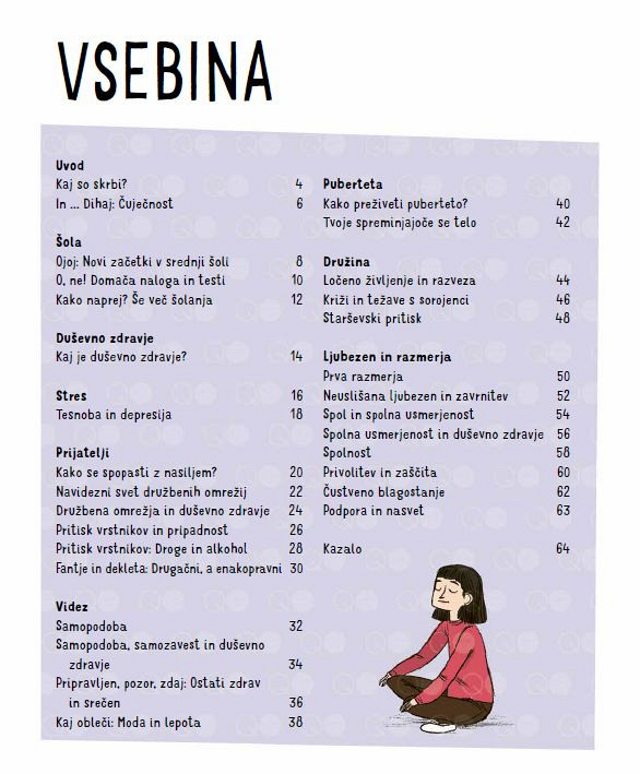 V tem poučnem vodniku so zajeti VSI strahovi in VSE skrbi, ki ti med odraščanjem lahko povzročijo nemalo tegob – najsi gre za težave v šoli ali razmerjih, nenehne pritiske družbenih omrežij, stiske zaradi samopodobe ali zapletov doma. S pomočjo spodbudnih nasvetov, resničnih primerov in življenjskih vprašanj mladoletnikov boš premagal tesnobo in stres, ki lahko zamajeta tla pod nogami vsakemu od nas. Preberite več