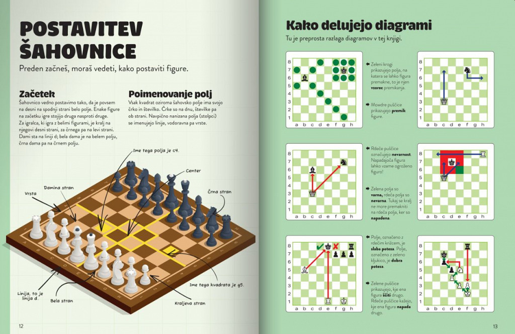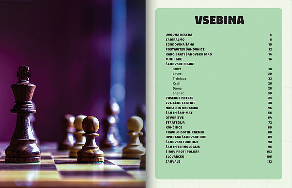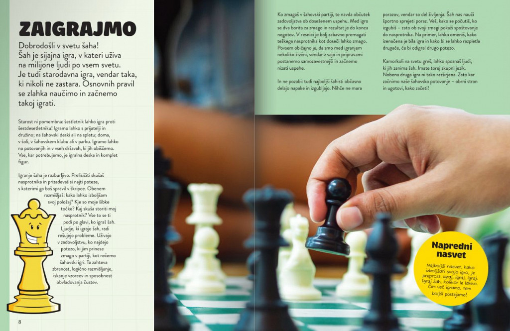Knjiga vsebuje pedagoški pristop, ki temelji na letih izkušenj in ga spremljajo zabavno predstavljena dejstva. Avtor John Foley je sekretar izobraževalne komisije Evropske šahovske zveze. Je avtor delovnih zvezkov za otroke, deluje pa tudi kot učitelj šaha. Bralce vodi od zgodovine šaha, do razlage posameznih figuric, postavitve, potez, strategij. Naučimo se zvijač, bontona, napada in obrambe. Jezik je preprost, razumljiv in jedrnat. Besedilu so dodane ilustracije, diagrami in fotografije.