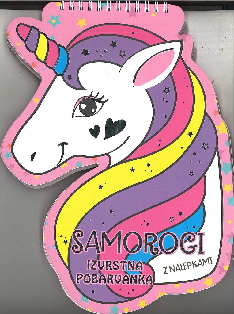 Pred vami je izvrstna pobarvanka z motivi samorogov, ki jo lahko pobarvate s priloženimi flomastri.Spiralna blok vezava, velikost: 28 x 21 cm, razgibana, 40 listov (80 strani) + 1 stran nalepk + 4 flomastri.