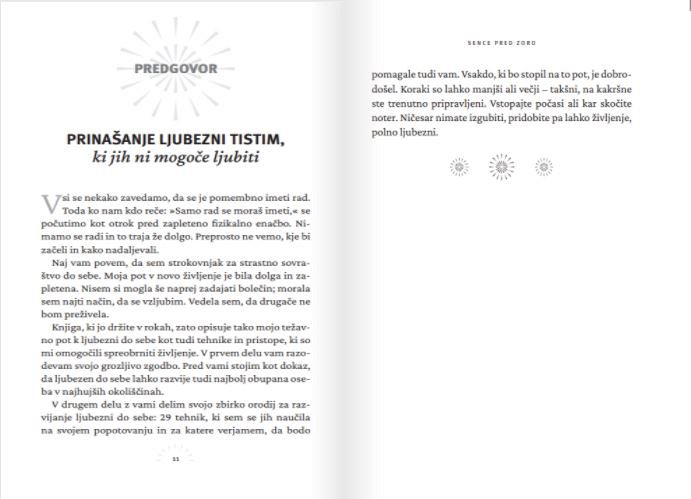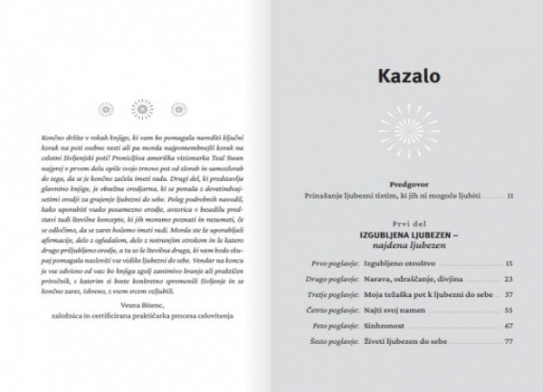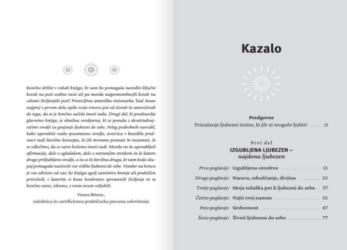 Postopoma in z neverjetno močjo si je Teal izborila pot iz roba obupa do svetlobe … In se navsezadnje iz teme prebila v svetlo zoro ljubezni do sebe. V knjigi vam bo pokazala, kako lahko tudi vi prebudite občutek, ki ga morda pogrešate v svojem življenju – da ste vredni. Danes uveljavljena in priljubljena duhovna avtoriteta Teal v knjigi opiše svojo izjemno življenjsko zgodbo z namenom, da tudi drugim pokaže pot v svetlobo, in razkriva, kako se je izkopala iz samosovraštva.