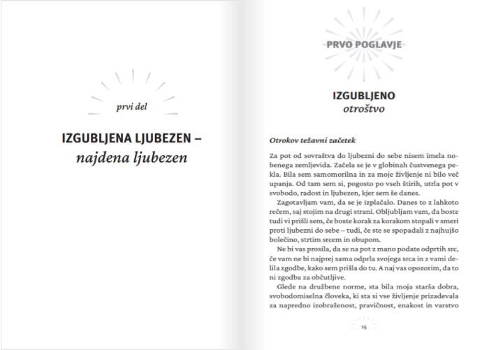 Ta knjiga vsebuje tako njeno pretresljivo zgodbo kot korake za ozdravljenje celo najglobljih občutkov trpljenja. V tem razumljivem priročniku vam bo predala mogočne duhovne vaje, uvide in perspektive, pri čemer boste sami izbrali, katere tehnike so prave za vas.