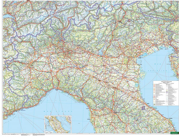 Avtokarta Severna Italija v merilu 1:500.000 vsebuje veliko informacij, ki so uporabne in koristne za potovanje na sever Italije. Razvejano cestno omrežje je natančno kartirano, slikovite ceste so barvno poudarjene, na zemljevidu pa so označeni številni zanimivi izletniški cilji. Zemljevid prikazuje območje od severne Italije do vključno Siene.