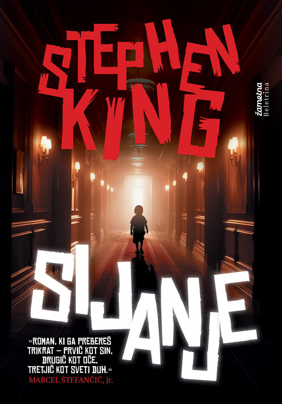 Založba Beletrina že nekaj let v rednih razmakih skrbi za navdušene bralce Kingovih uspešnic. Tokratna bera prinaša eno njegovih najuspešnejših del, ki je prek Kubrickovega filma z Jackom Nicholsonom že zdavnaj postalo del našega kolektivnega kulturnega spomina.