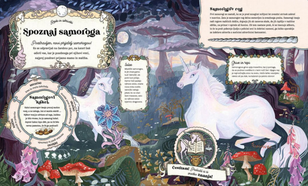 Skrivni klub samorogov … Odkrij knjigo v knjigi! Verjameš v samoroge? Bi se rad pridružil klubu strokovnjakov, ki v divjini iščejo samoroge in skrbijo zanje? Potem je zdaj pravi trenutek, da postaneš član Skrivnega kluba samorogov.