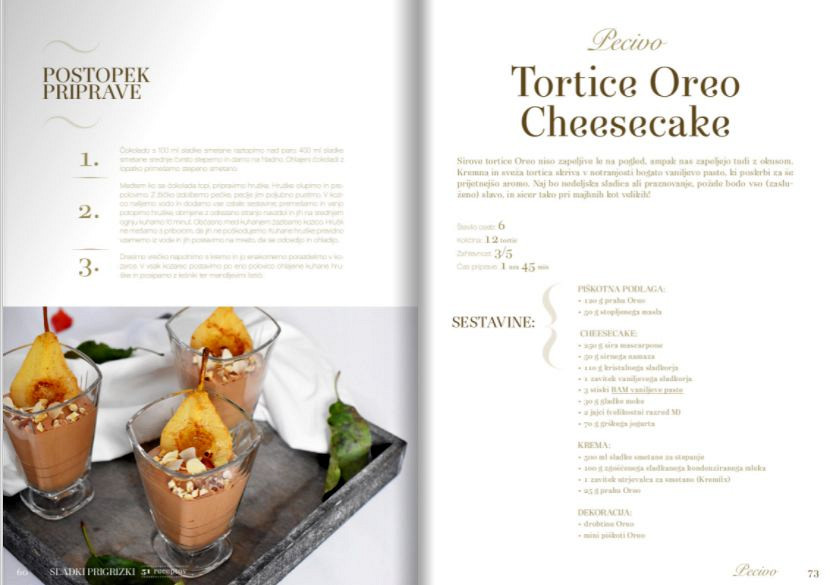 Vprašanja, ali je velikost jajc res pomembna, kako se pripravi biskvitna masa, kako se topita čokolada in kako želatina, kako se stepa sladka smetana za kreme ipd., ne bodo več le vprašanja, saj smo v knjigi nekaj prostora namenili tudi sestavljanju tort in ostalim nasvetom, ki jih je po našem mnenju potrebno upoštevati pri peki. V knjigi so poleg slik vseh sladic tudi nazorno opisani koraki priprave, ob vsakem receptu pa vas čakajo še dodatne informacije o času priprave, zahtevnosti in količini, ki jo dobite s pripravo recepta.