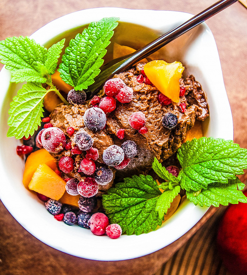 Čokoladno vanilijeve kocke z borovničevo kremo