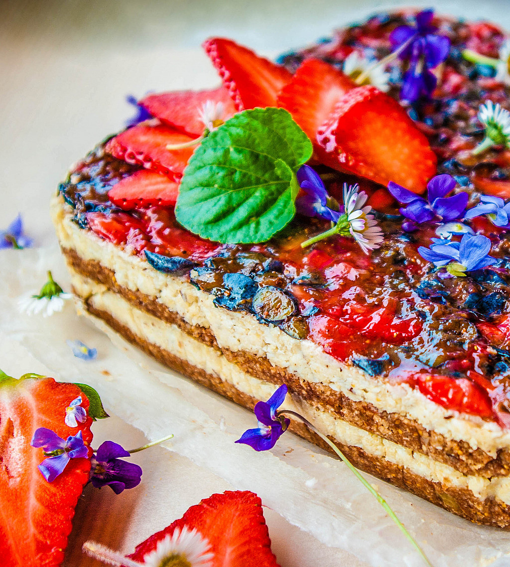 Tofujeva tortica s kremo iz indijskih oreščkov in sadja