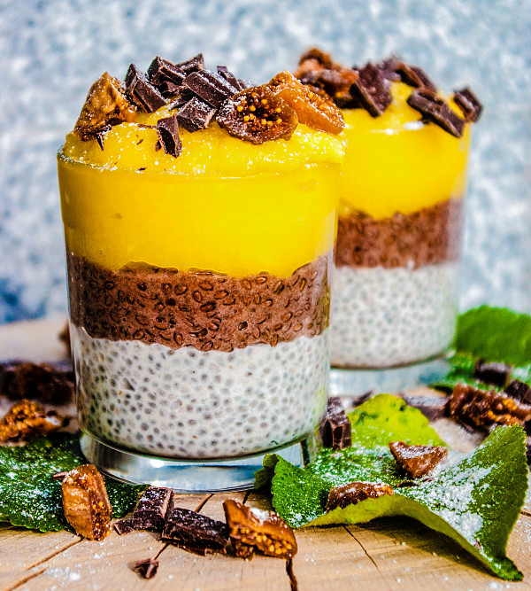 Kokosov puding s slivovim prelivom in kokosovo smetano