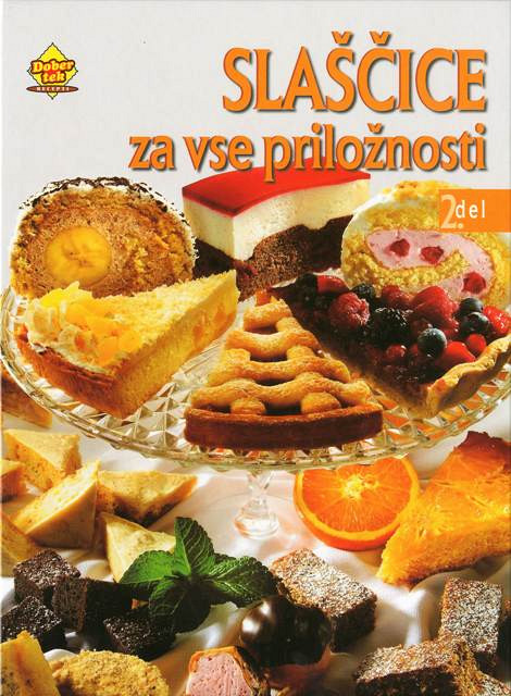Iz serije Dober tek recepti vam predstavljamo knjigo Slaščice za vse priložnosti 2. del, ki obsega izbor najboljših receptov iz revije Dober tek in veliko novih, še neobjavljenih. Slaščice so razdeljene v naslednja poglavja: biskvitni kolači, ocvrte slaščice, velikonočni kolači, pite, slaščice iz pekača, kolači iz kvašenega testa, slaščice iz listnatega testa, slaščice iz kuhanega testa. Trda vezava, 22 x 30 cm, 88 strani.