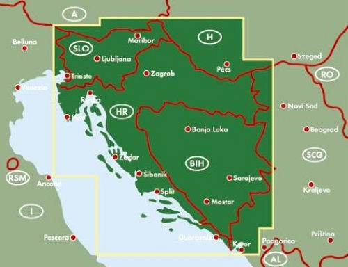 Slovenija, Hrvaška, Bosna 1:500 000.