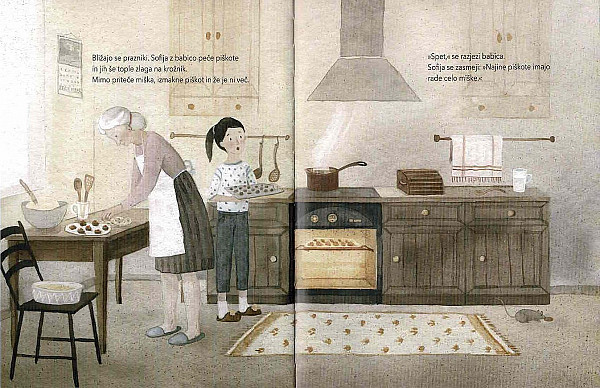 Na podstrešju se skriva posebej mameča najdba, babičini baletni copatki. Sofija v trenutku sklene, da bo nekoč tudi sama baletna prvakinja. Kakor v slovitem Hrestaču, ki ga slutimo v podtonu besedilnega tkanja, tedaj ura odbije polnoč. In v tistem deklica zapazi miško z rožnatim trakom, zataknjenim za krempeljček. Dekličino koprnenje je kmalu uslišano; obiskuje baletno šolo in se nikakor ne loči od podarjenih copatkov. Zaupa, da so srečonosni. Zato je njena žalost neizmerna, ko se tik pred velikim nastopom, v katerem bi zablestela kot Sladkorna vila, na copatku strga trak.