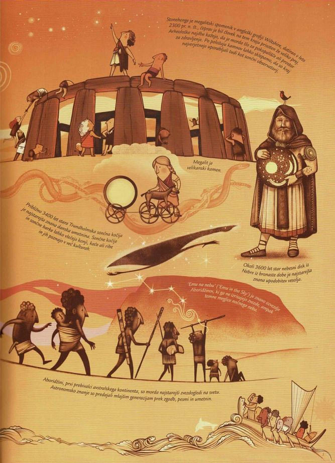 Osupljive celostranske ilustracije v knjigi so polne pisanih zanimivosti o Soncu. Ustvaril jih je Peter Goes, avtor uspešnic Časovno potovanje in Reke. Sonce vidi vse nas, nihče pa ne more gledati vanj. Ob imploziji zvezda še enkrat vdihne, nato pa svoje zunanje plasti zaluča v vesolje. V njih so drobni delci, ki so gradniki vsega živega. Vsi smo torej narejeni iz zvezdnega prahu.