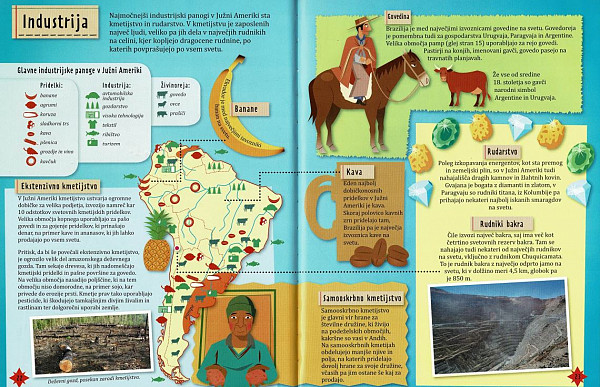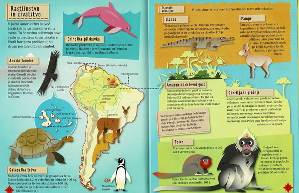 Potuj z nami v Južno Ameriko. Južna Amerika je celina trikotne oblike, ki na severu sega do ekvatorja in se razteza navzdol proti antarktičnemu krogu. Njeno raznoliko površje pokrivajo deževni gozdovi, puščave in ledeniki, tam so velika sodobna mesta pa tudi manjše naselbine, kjer še živijo staroselska plemena. Preberite več