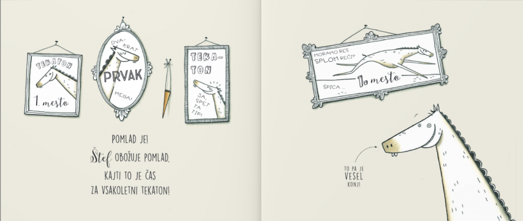 Vsi poznamo koga, ki enostavno mora vedno zmagati. Takšen je tudi Štef, sicer čisto neškodljiv in prikupen konj, ki mu je zmagovanje preprosto zakon. Na vsakoletnem gozdnem tekatonu je vedno prvi. Sotekmovalci so ga že malo siti, zato spremenijo pravila igre in organizirajo štafeto.