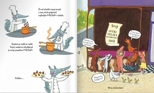 Strašni volk je vadil in vadil. Topil, mešal in izboljševal je svojo posebno čokolado.