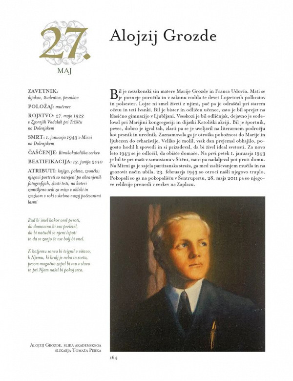 Knjiga svetniki je čudovit vodnik skozi leto, v katerega so vključeni znameniti svetniki z vsega sveta, tudi tisti, ki so navedeni v Splošnem rimskem koledarju, Bogoslužnem koledarju za škofije Združenih držav Amerike in Lekcionarju Anglikanske cerkve. Poleg njih so dodane še druge velike osebnosti, med njimi številne iz Pravoslavne cerkve, krajevni in sodobni svetniki. Med njimi so tudi Slovenci Anton Martin Slomšek, Alojzij Grozde in Irenej Friderik Baraga.