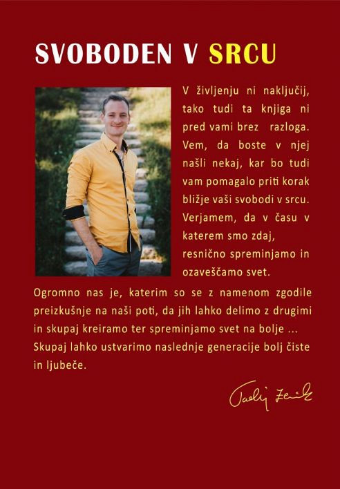 V življenju ni naključij, tako tudi ta knjiga ni pred vami brez razloga. Vem, da boste v njej našli nekaj, kar vam bo pomagalo priti korak bližje vaši svobodi v srcu. Verjamem, da v času, v katerem smo, resnično spreminjamo in ozaveščamo svet.Ogromnemu številu izmed nas so se z namenom zgodile preizkušnje na naši poti, da jih lahko delimo z drugimi in skupaj kreiramo svet in ga spreminjamo na bolje …Skupaj lahko ustvarimo naslednje generacije čistejše in bolj ljubeče. Preberite več