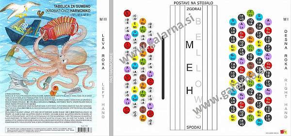Vsak, ki bo prijel tabelico v roke, se bo spraševal, kako je doslej sploh lahko shajal brez tega tako enostavnega in obenem koristnega pripomočka. Če bodo otroci tabelico postavili na notno stojalo tako, da vidijo tudi hobotnico, ki igra na harmoniko, jim bo pri igranju hitro jasno, kateri gumbi in basi so drug ob drugem in kateri so višje ali nižje.
