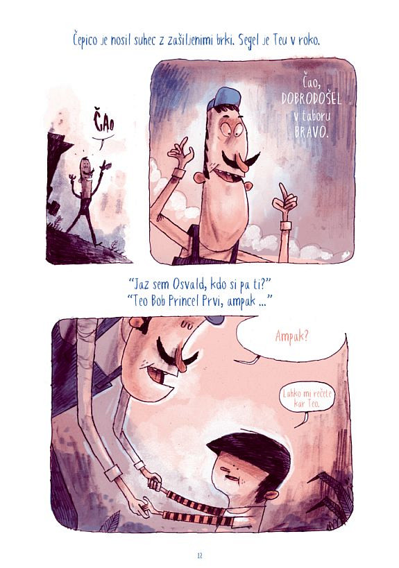 Teodorju Bobu Princlu Prvemu, ki je na lastno pest odkril, kje leži pradavnina, in ki se spozna na mamutove kakce, ni prav nič do tabora Bravo. Tam ne pozna nikogar in v njem je malo nevarno, včasih un poco divje Skakanje z Vratolomne skale, trik z ovco, izvajanje zibanca … Kaj storiti, če česa ne zmoreš ali če ima tvoj prijatelj domotožje? V Taboru Bravo boste odkrili kotičke, kjer še nikoli niste bili. Padci so dovoljeni in barva se čez črto!