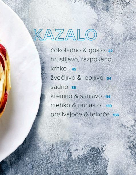 Zlagali, nadevali, zvijali in stepali boste kot za šalo, vse do češnje na torti vsakega obroka. In če vas pita iz dvojnega čokoladnega musa, matchini makroni in najmehkejši brezglutenski kolač s kokosom, limeto in malinami še niso ponesli med oblake, je tu nadaljnjih 75 receptov za vsako priložnost ali razpoloženje, pa naj bo to sladka pustolovščina s prijatelji ali neubranljivi napad sladkosnedja pozno ponoči. Vendar nikakor ne pozabite prihraniti vsaj kakšnega koščka zase.