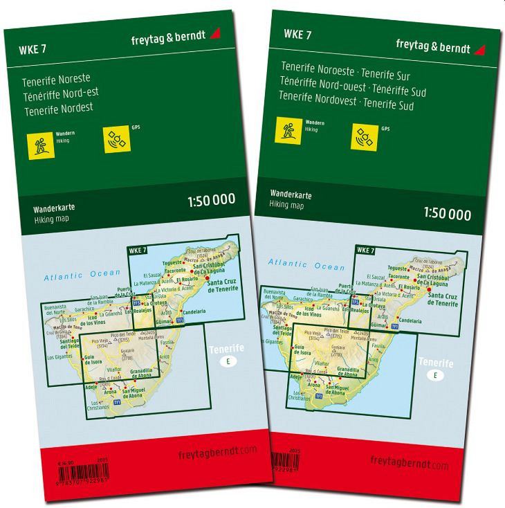 Komplet pohodnih zemljevidov Tenerifi 1:50.000 sestavljata dve karti, ki ponujata informacije o pohodnih poteh, znamenitostih in prostočasnih dejavnostih. Zemljevida sta idealno orodje za načrtovanje pohodov, kolesarskih tur in izletov na otoku. Preberite več