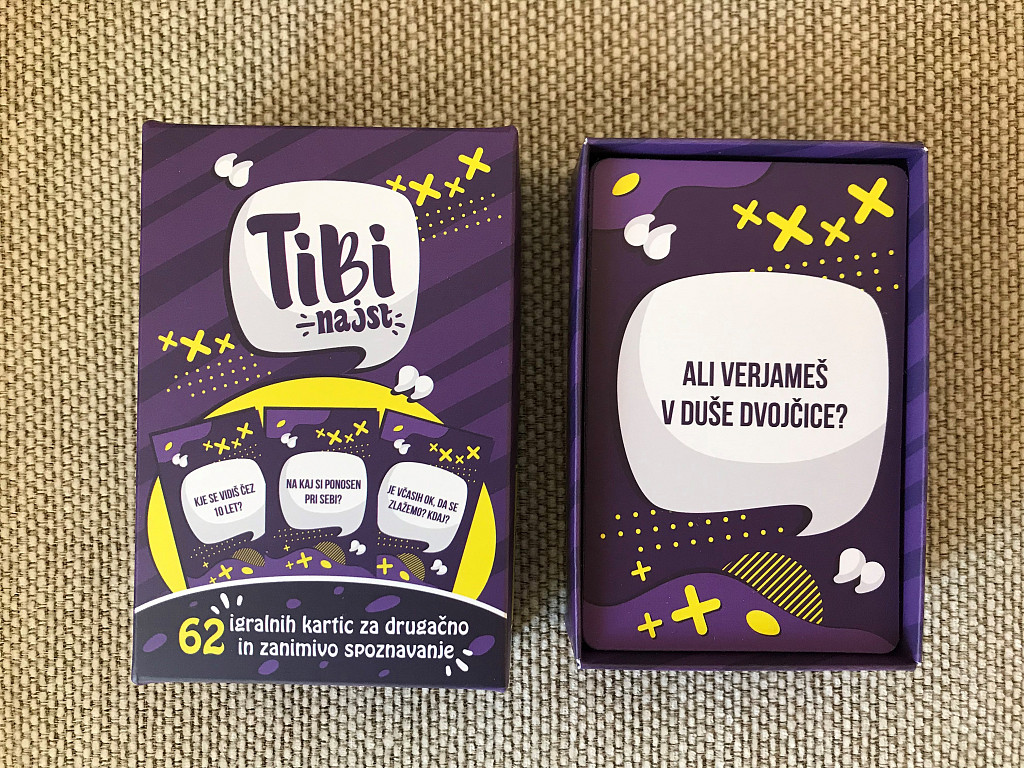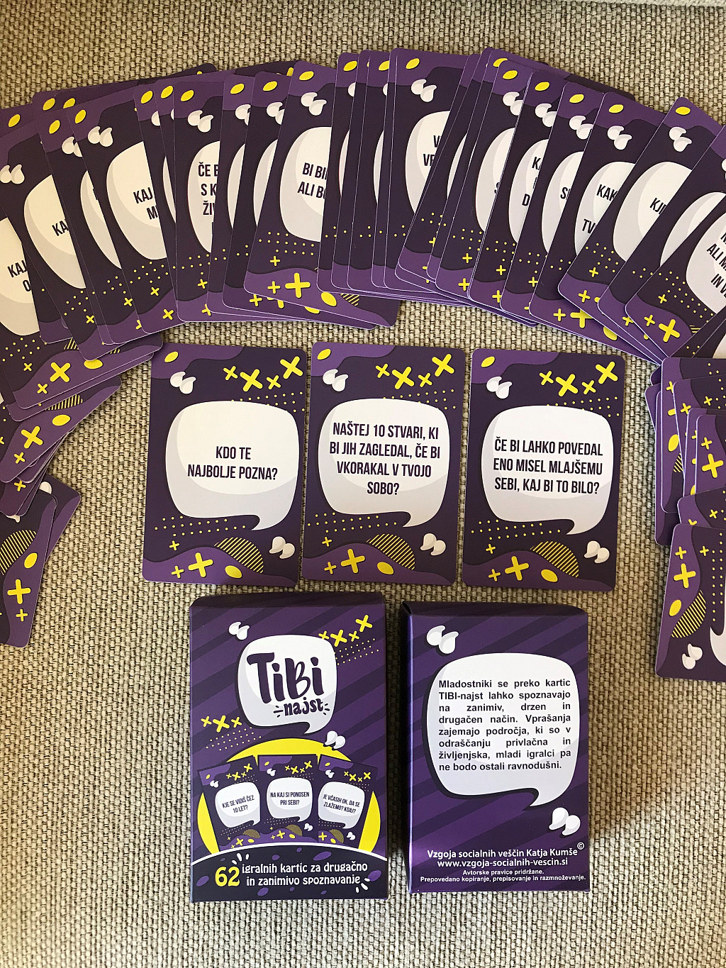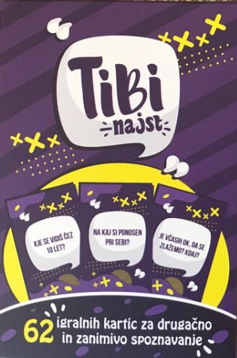 Za vse mladostnike, ki iščejo odgovore na zrelejša, drznejša in zabavnejša vprašanja, so z njihovo pomočjo ustvarili NOVE kartice TIBI-najst! 62 vprašanj zajema področja, ki so v odraščanju privlačna in življenjska, mladi igralci pa bodo lažje odložili svoje pametne telefone in ob razmišljanju ter odgovorih prijateljev ne bodo ostali ravnodušni. Primerno za mlade od 14. leta dalje, v primernem okolju pa bodo spustili zraven tudi odrasle. Preberite več