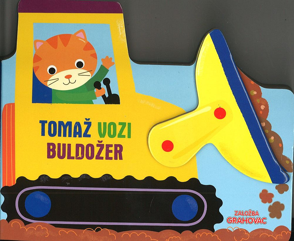 Tomaž gradi hiše. Vsak dan pri delu uporablja svoj buldožer. Poglej, kako spreten je pri delu.Kartonka v obliki vozila, reliefna naslovnica, velikost: 14 x 17 cm, 10 strani.