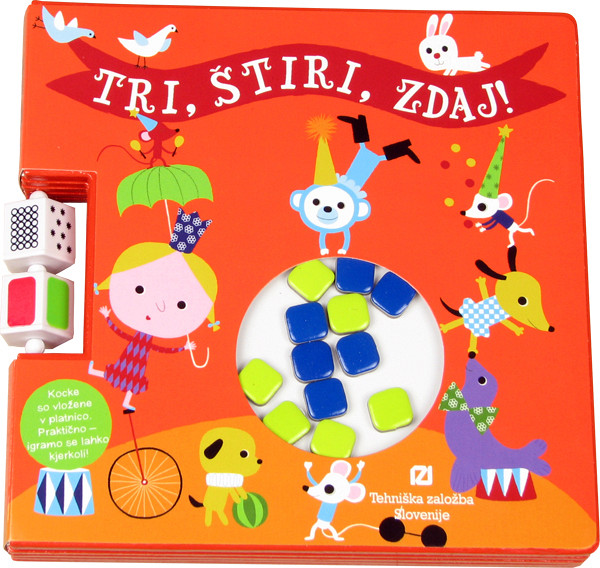 V knjigi so 4 igralne plošče, 2-krat po 6 igralnih ploščic ter 2 kocki, ki sta vloženi v platnico, kar je izjemno praktično, saj omogoča igranje kjerkoli in brez nadležnega iskanja kock po tleh, pod avtomobilskimi sedeži ipd.