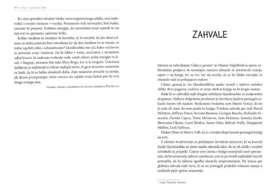 »Knjiga Učenja in vaje Quodoushke: starodavna izročila o spolnosti čudovito dopolnjuje starodavna znanja daoističnih šamanov. Ta učenja prinašajo preobrazbo, razkrivajo načine za poglabljanje in izboljšanje odnosov ter nas učijo, kako dostopati do univerzalnih zdravilnih sil stvarstva.« - Mojster Mantak Chia, avtor knjig Alkimija spolne energije, Prebuditev zdravilne energije in Notranji smehljaj