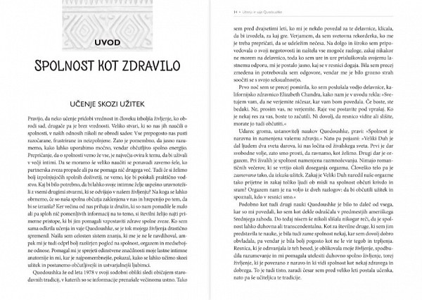 Vadba Quodoushke vključuje igranje vlog, delo s spolno energijo, čakrami in svetlobnim telesom ter obrede, ki vašemu ljubljenju povrnejo občutek svetosti. Razkriva tudi, kako uporabiti užitek, da bi postali občutljivejši in ustvarjalnejši ljubimci.